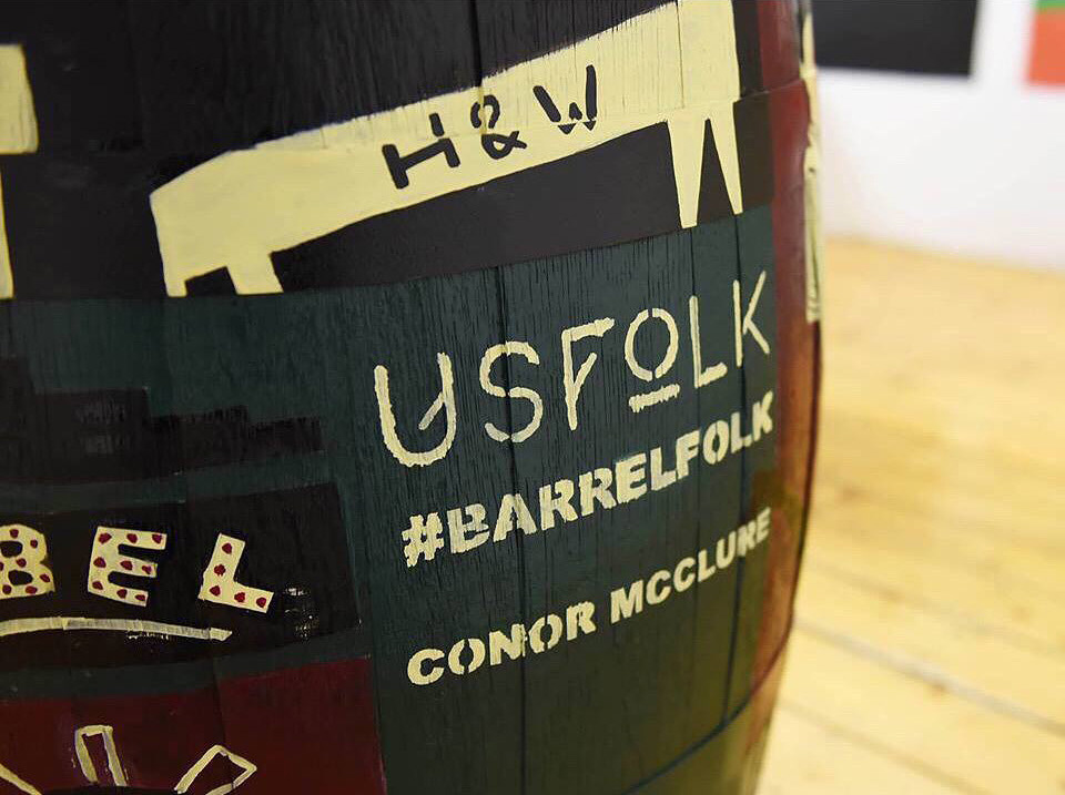 Painted whiskey barrel commisioned by Jamesons Whiskey for The Bullitt Bar Belfast.